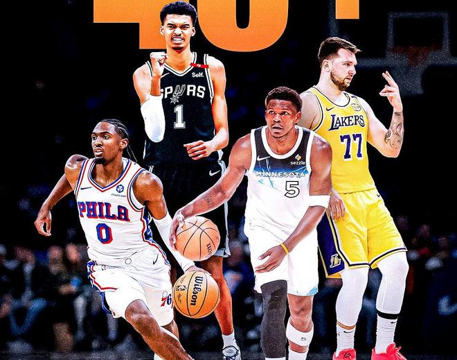 在今天比赛中,许多球队打出了让人眼前一亮的表现,其中猛龙、76人、爵士、马刺更是打出了让人难以置信的比赛内容,分别爆冷击败了强敌!猛龙VS老鹰后者是更被看好的一方,76人VS凯尔特人绝大多数人都看好后者,爵士打快船更不用,赛前很多人都在畅享快船赢多少分,马刺对阵独行侠,虽然文班亚马很强,但赛前球迷预测整体实力还是更看好独行侠,然而这些年轻球队,纷纷上演了以弱胜强的壮举!各队揭幕战至今,已经有4名球员打出了40+表现(爱德华兹得到41分7篮板1助攻1盖帽,东契奇43分12篮板9助攻2抢断1封盖,文班亚马得到40分15篮板1助攻1抢断3封盖,马克西40分2篮板6助攻2抢断1封盖),据统计,这是NBA史上首次出现!