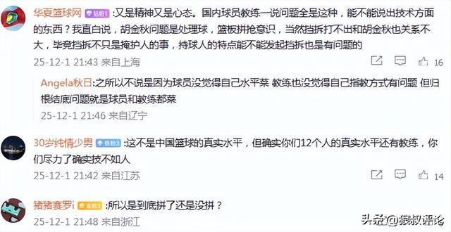 有球迷质疑评论道:又是精神又是心态。国内球员教练一说问题全是这种,能不能说出技术方面的东西?我直白说,胡金秋问题是处理球,篮板拼抢意识,当然挡拆打不出和胡金秋也关系不大,毕竟挡拆不只是掩护人的事,持球人的特点能不能发起挡拆也是有问题的。