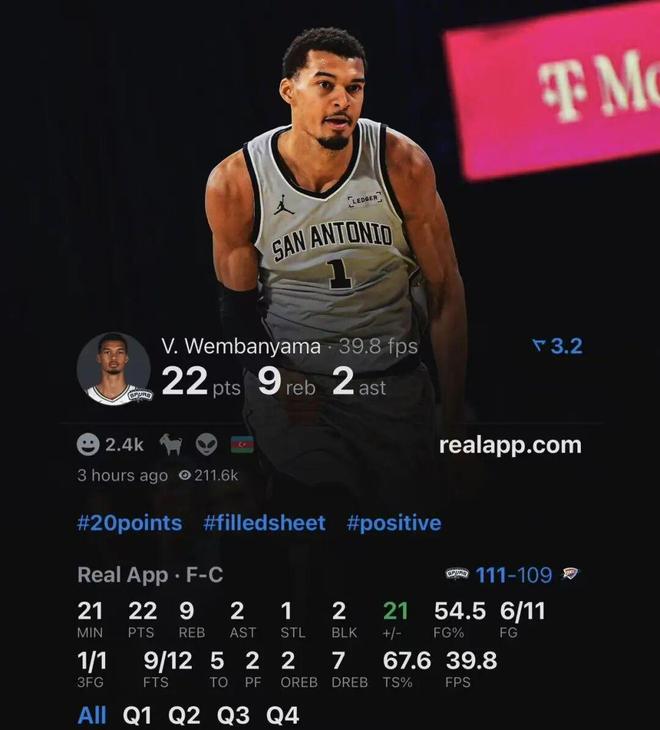 文班替补复出22+9,SGA29+4!马刺111-109终结雷霆!