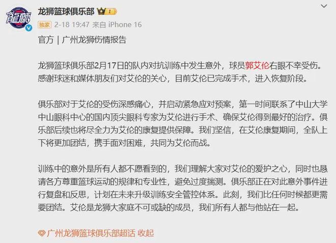 24-25赛季,郭艾伦为广州队打了11场常规赛,场均出战27.5分钟贡献15.7分3.3板5.7助,包括单场25分7助、32分7助、27分12助,以及40分5助,证明了自己仍是本土顶级后卫,可惜今年二月份在队内训练中右眼严重受伤从而休战至今,新赛季(12月12日开打)为他的D类顶薪合同年应该可以如期复出。