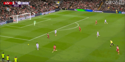第1分钟,闪电战!埃基蒂克接戈麦斯头球抽射破门,利物浦1-0领先布莱顿!