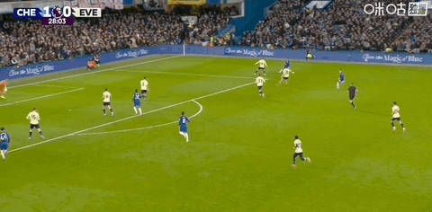 第28分钟,切尔西前场耐心打出连续进攻,最后恩佐头球攻门被门将没收