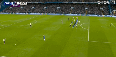第39分钟,埃弗顿任意球罚到后点,塔尔科夫斯基头球攻门偏出
