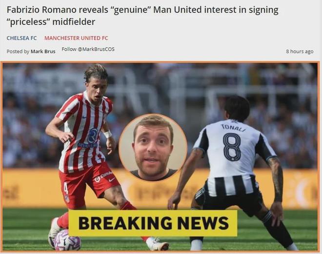 罗马诺在YouTube频道中确认,曼联对前切尔西中场加拉格尔很感兴趣。
