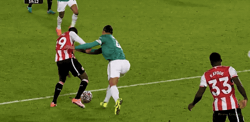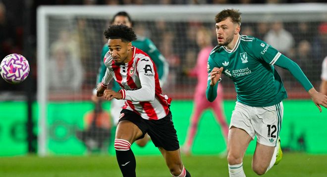 上半场的尾声阶段,利物浦攻势如潮,加克波倒在禁区内,裁判没有任何表示。第45分钟,利物浦前场传球被抢断,布伦特福德打出快速反击,达姆斯高助攻沙德破门。